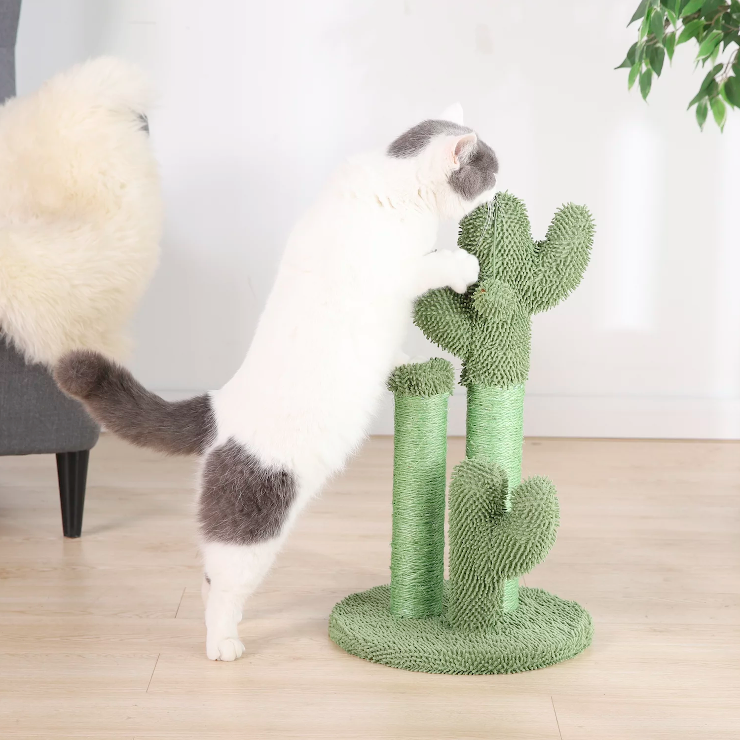 Vibrant Life Cactus 3-Arm Chenille, Sisal & Jute Cat Scratching Post with Cat Toy